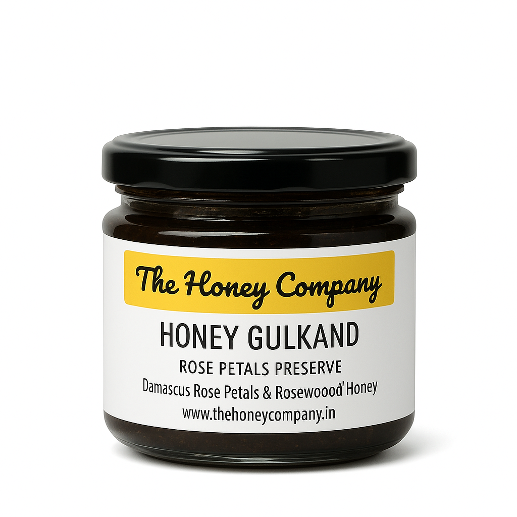 Immerse yourself in the delicate fragrance of roses and the golden sweetness of pure honey. The Honey Company’s Honey Gulkand is crafted from hand-picked Rosa × damascena petals sourced from the famed Pushkar gardens of Rajasthan, gently blended with unprocessed Rosewood Honey collected from the pristine Himalayan forests of Uttarakhand.