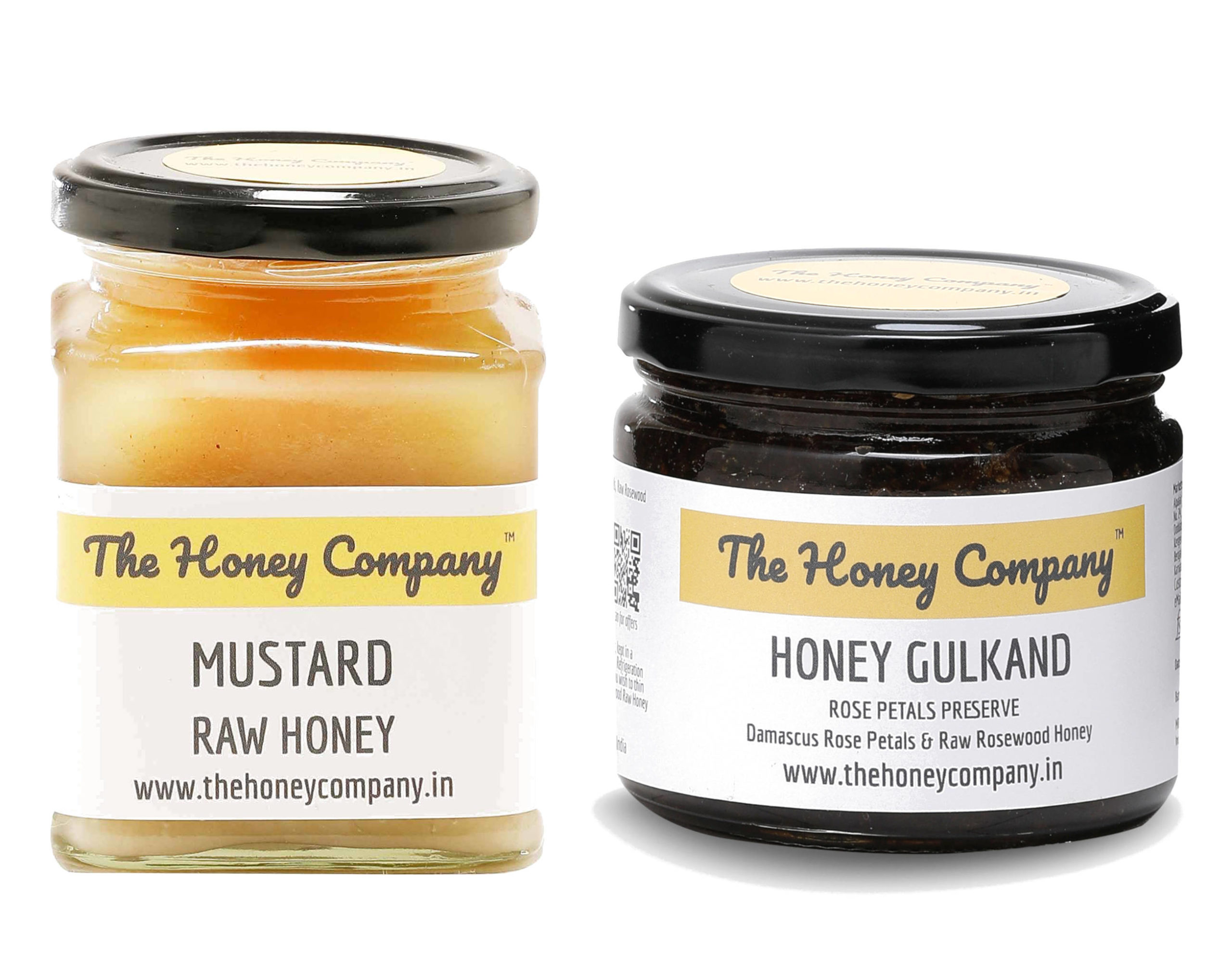 Experience two timeless treasures from The Honey Company: the earthy sweetness of Mustard Raw Honey and the floral richness of Honey Gulkand. Crafted with care and drawn from traditional practices, this duo brings together natural purity and artisanal taste.